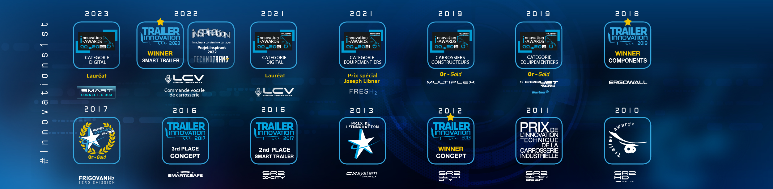 Plebiscito nel 2013 per la nuova gamma di semirimorchi LAMBERET, la più moderna e innovativa d'Europa. Questo è un riconoscimento della nostra ambizione di fornire ai trasportatori la soluzione più efficace per rispondere alle esigenze specifiche della loro professione. |